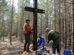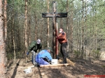 Tak jak krzyżem koło miejscowości Borowe zainteresowali się Romek i Sławek Zasimowie, ale tym razem z Jerzym Pańkowskim i moją osobą. Te fragmenty krzyża, które nadawały się do odzyskania, zostały zamknięte w metalowej konstrukcji i tak zabetonowane na kurhanie, na którym kiedyś stał. Mamy nadzieję, że w ten sposób zachowaliśmy go na kolejne lata, do czasu, aż kiedyś ktoś, znów da mu kolejne nowe życie, a tym samym zachowamy pamięć o niewielkim fragmencie naszej historii. Pamięć przecież jest, ponieważ z przekazów miejscowej ludności wynika, że krzyż ten upamiętnia prawdopodobnie okres VI wojny polsko-szwedzkiej, czyli tzw. "Potopu szwedzkiego". Tu miała odbyć się bitwa (potyczka) pomiędzy oddziałami polskimi i szwedzkimi. Tu miało polec wielu żołnierzy. Krew spływała strumieniami, dlatego też nazwano to miejsce "Krasna Hrebla".