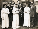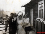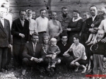 Od lewej: Maria Moroz, ?, Jan Birycki, Maria Kowalewska, Zinaida Szymaniuk, Maria Szymaniuk, ?, Maria Birycka, Wiera Oniśkiewicz, Anastazja Szymaniuk, Anna Mirończuk, ?, ?, ?, ?, Walenty Karpiuk. Siedzą od lewej: ?, Mikołaj Szymaniuk i ?