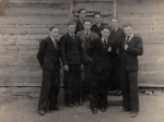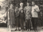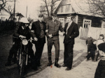 ![20.03.1943 r. Z opisu zdjęcia wynika, że widać na nim Jana i Michała Zubryckiego. Widoczny dom to obecnie Lipowa 45 (prawie się nie zmienił do dziś). Dom na drugim planie już nie istnieje (obecnie na tym podwórku jest niezamieszkały dom nr 41). Pierwsza z prawej to Nadzieja Roszczenko. Pierwszy z prawej na pierwszym planie Michał Birycki syn Bazyla, a tuż nad jego głową z lewej to Mikołaj Niedźwiedź. Na pierwszym planie z lewej strony w ciemnej marynarce to Aleksy Birycki.]()