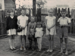 ![Maria Zdanowska z wnukami. Od lewej Mirka, Grażyna, Jurek i Krysia]()