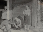 ![Budowa świetlicy wiejskiej. Od lewej: Fózef Zubrycki, Aleksander Zasim i ?]()