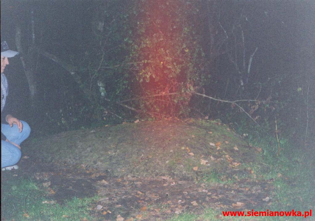 Pewnego razu, pod wieczór, Jerzy udał się na opisywane cmentarzysko z wahadełkiem. Stuknął wahadełkiem o kamień - w celu zneutralizowania - i poczuł, że ktoś go obserwuje. Ciarki mu przeszły po plecach, tym bardziej, że ok. 20 m dalej ktoś jakby walił monotonnie kołkiem w dąb. Jerzy zaczął się modlić i wycofywać. Ten ktoś odprowadził go aż do samochodu. Później Jerzy stwierdził, że naruszył coś niedobrego, zrobił coś, czego zrobić nie powinien. Może nie był godny tego w tym dniu?