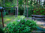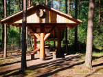 - miejsce ogniskowe z ławami wokół oraz zadaszoną wiatą przy ognisku,