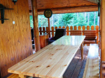 - taras zadaszony gdzie znajdują się: stół oraz ławy,