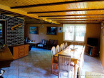 - salon z kominkiem, dużym stołem z krzesłami i telewizorem będący zarazem pokojem gościnnym z wersalką 2 osobową,