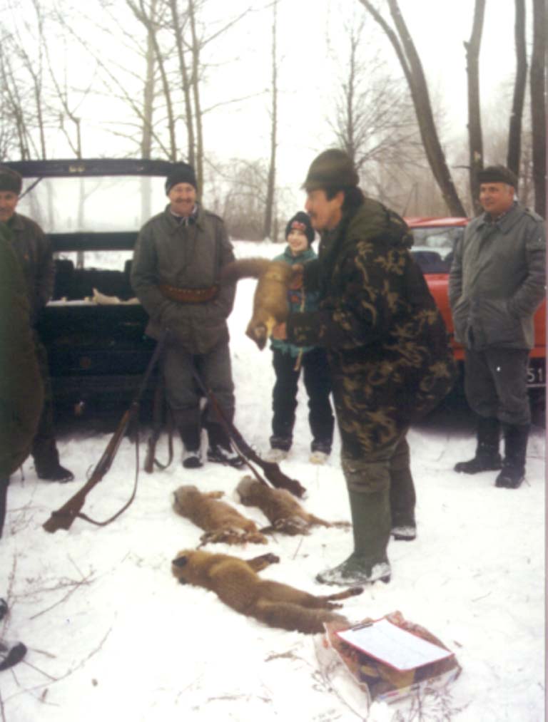 Po zakończeniu polowania zbiorowego w obwodzie 92 – wieś Nowa Łuka, 1999 rok