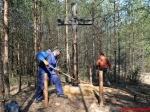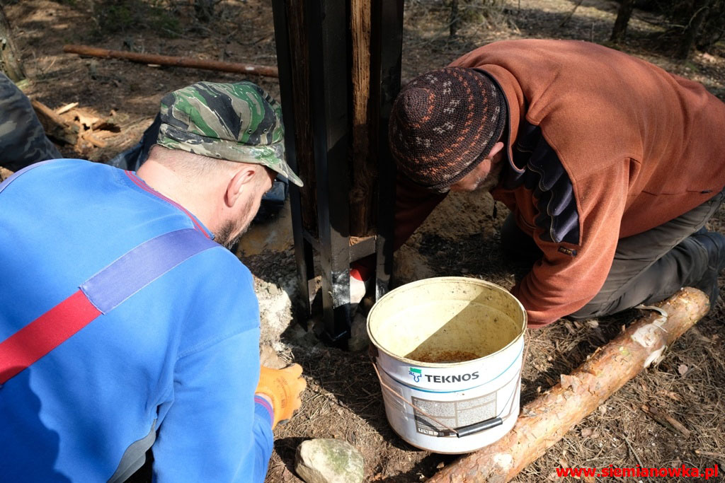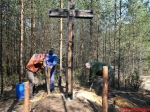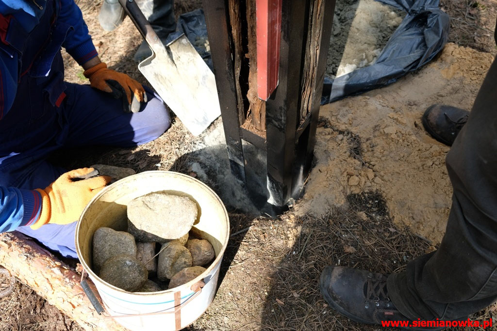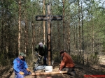 Tak jak krzyżem koło miejscowości Borowe zainteresowali się Romek i Sławek Zasimowie, ale tym razem z Jerzym Pańkowskim i moją osobą. Te fragmenty krzyża, które nadawały się do odzyskania, zostały zamknięte w metalowej konstrukcji i tak zabetonowane na kurhanie, na którym kiedyś stał. Mamy nadzieję, że w ten sposób zachowaliśmy go na kolejne lata, do czasu, aż kiedyś ktoś, znów da mu kolejne nowe życie, a tym samym zachowamy pamięć o niewielkim fragmencie naszej historii. Pamięć przecież jest, ponieważ z przekazów miejscowej ludności wynika, że krzyż ten upamiętnia prawdopodobnie okres VI wojny polsko-szwedzkiej, czyli tzw. "Potopu szwedzkiego". Tu miała odbyć się bitwa (potyczka) pomiędzy oddziałami polskimi i szwedzkimi. Tu miało polec wielu żołnierzy. Krew spływała strumieniami, dlatego też nazwano to miejsce "Krasna Hrebla".