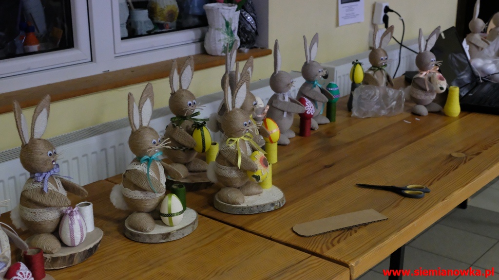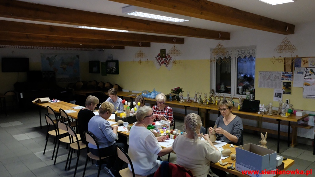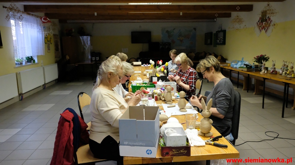 Przygotowania przedświąteczne JezioranekAktualności » Przygotowania przedświąteczne Jezioranek2019-04-10Tradycyjnie w każdą środę Panie z Koła Gospodyń Wiejskich "Jezioranki" w Siemianówce spotykają się w Świetlicy Wiejskiej. Dziś zastałem je, jak przygotowywały przepiękne zajączki na Wielkanoc.