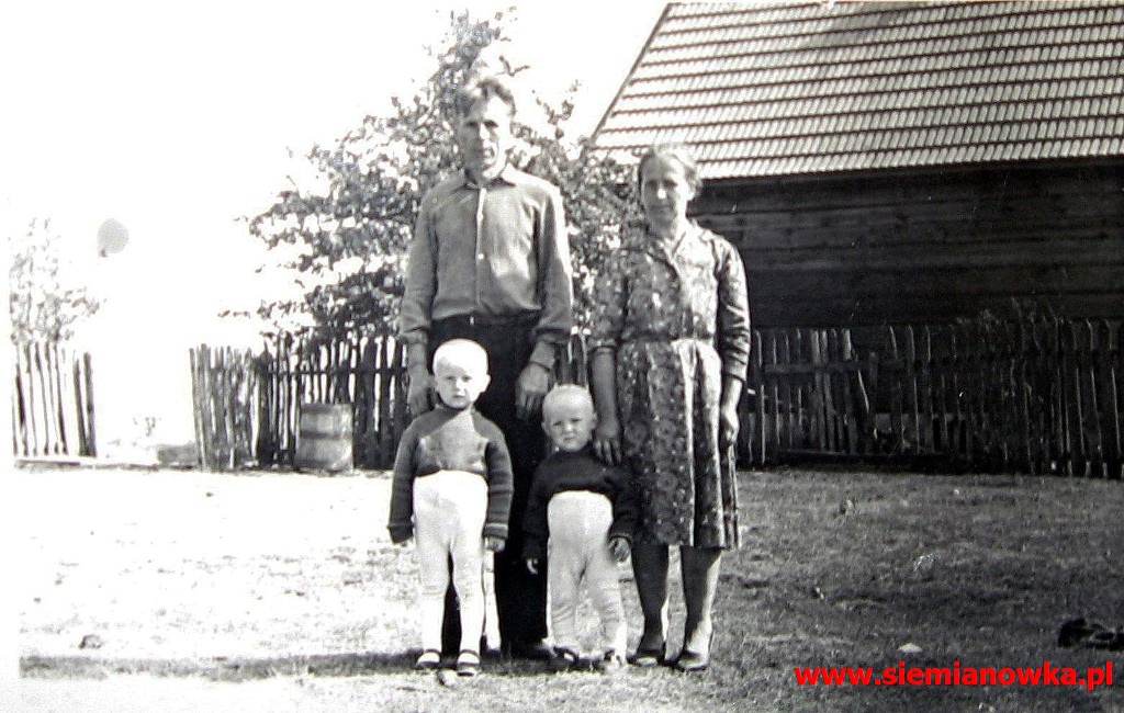 ![Wakacje 1964 roku gdzieś między Lewkowem Starym a Eliaszukami. Wiera i Konstanty Biryccy z Alikiem i Jurkiem. (Foto przekazała Dorota Łangowska)]()
