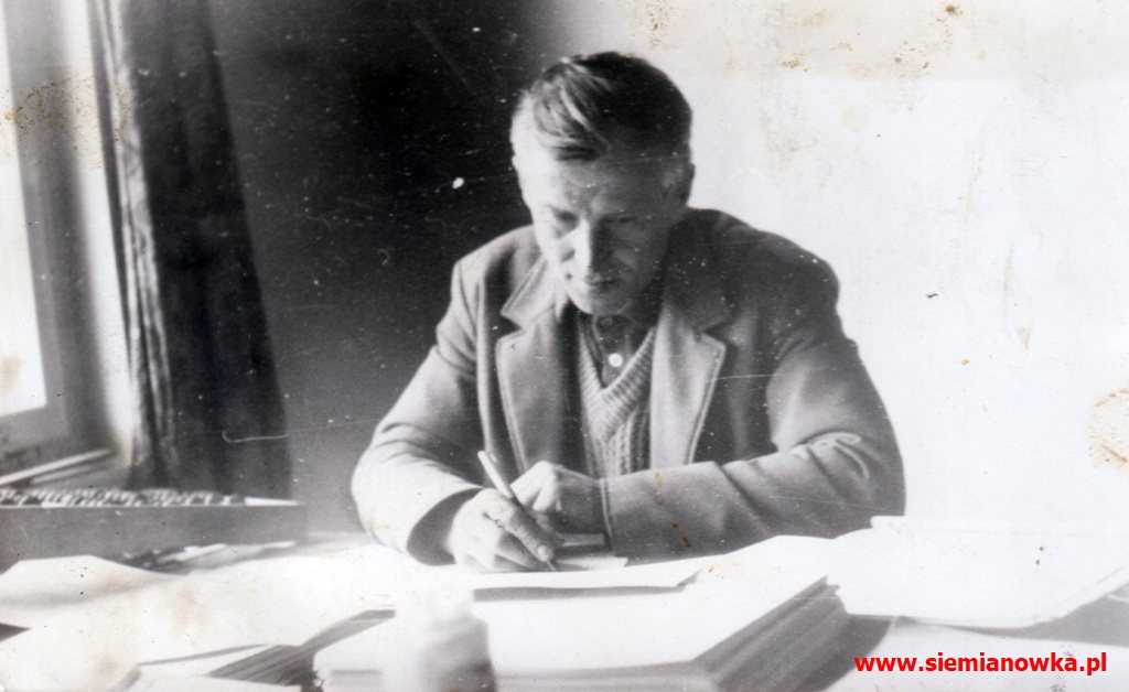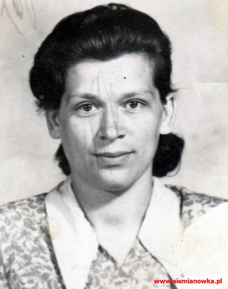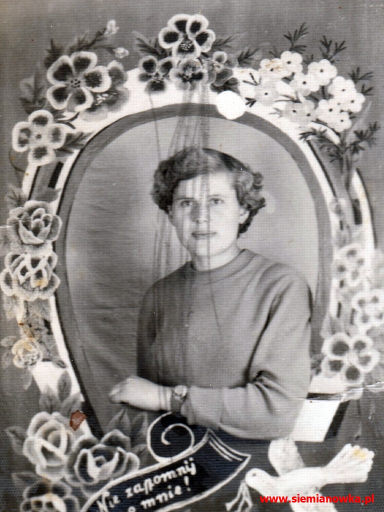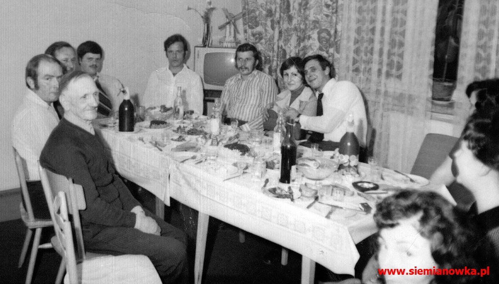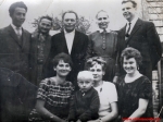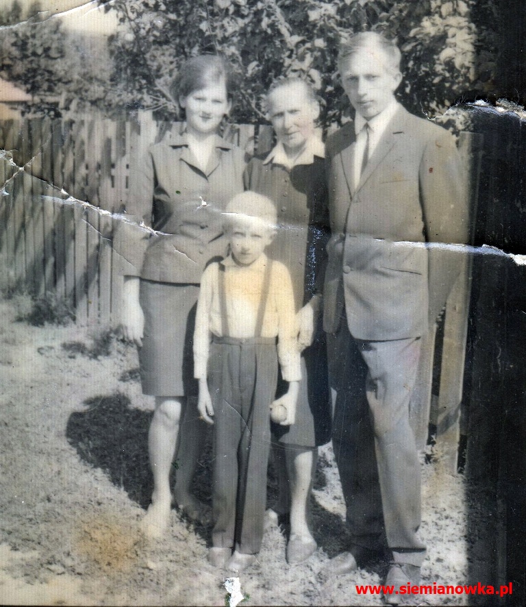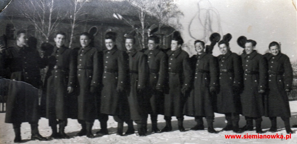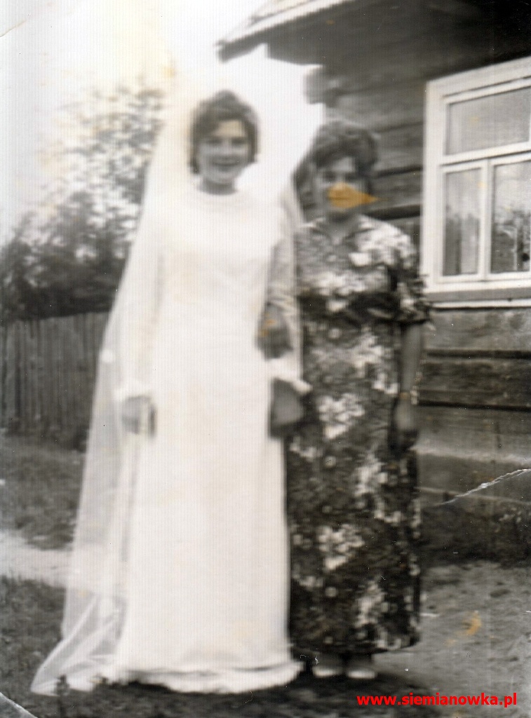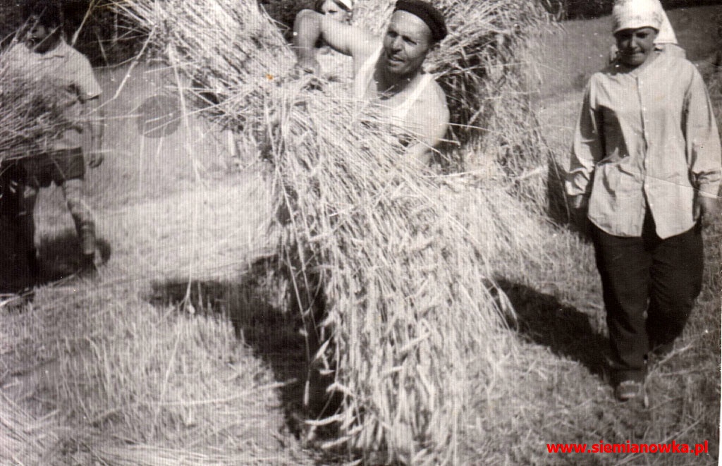 Od lewej: Maria Moroz, ?, Jan Birycki, Maria Kowalewska, Zinaida Szymaniuk, Maria Szymaniuk, ?, Maria Birycka, Wiera Oniśkiewicz, Anastazja Szymaniuk, Anna Mirończuk, ?, ?, ?, ?, Walenty Karpiuk. Siedzą od lewej: ?, Mikołaj Szymaniuk i ?