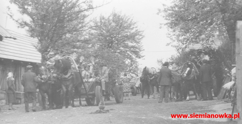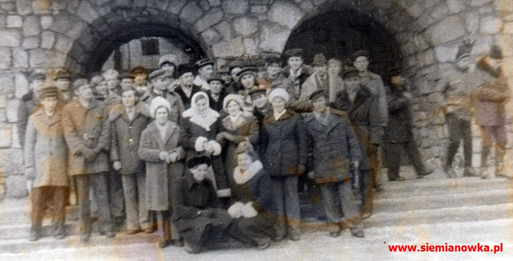 Od lewej: Moroz Wala, Magier Ludka, Szymaniuk Maria, Mirończuk Anna, Kowalewska Maria, Moroz Maria, przewodnik, Waśko Maria, Szymaniuk Anastazja, ?, ?, Birycka Maria, ?, Karpiuk Walenty, ?, ?, Szymaniuk Zinaida, ?, ?. Siedzą od lewej: Szymaniuk Mikołaj, ?, ?, ?.