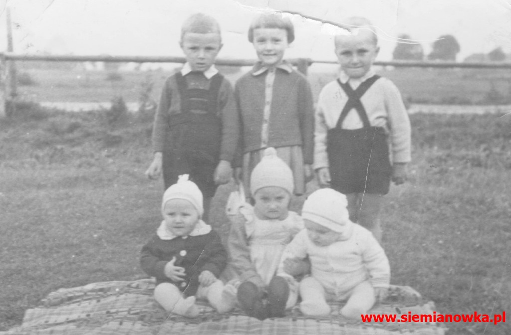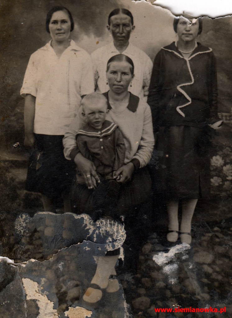 W środku od lewej: Lena Kalinowska i Maria Olichwier, mała Ala Karpiuk, Mikołaj Roszczenko, Eugeniudsz Birycki, ? i Jan Pańkowski