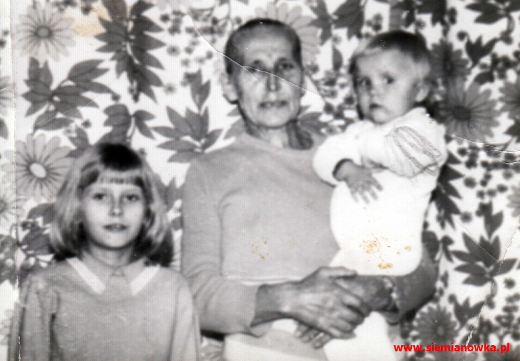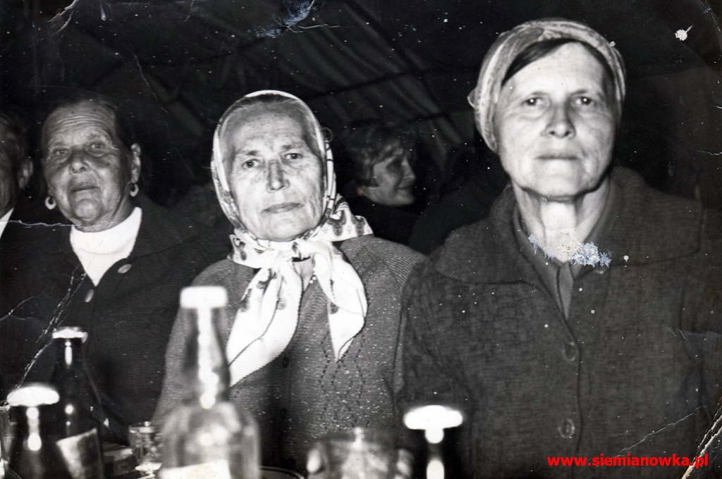 ![Od lewej: Maria Grygoruk (z Lewkowa), ? (z Olchówki) i Maria Olichwier]()